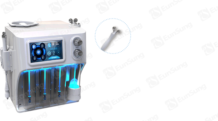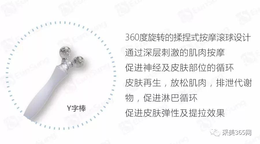 按摩球通过深层的刺激使肌肉放松, 促进皮肤与神经的循环及再生, 收缩肌肉,排除皮脂及体内废弃物, 促进静脉及淋巴循环。 再加上双重中低周波的电级设计, 加强肌肤的提升与弹力。