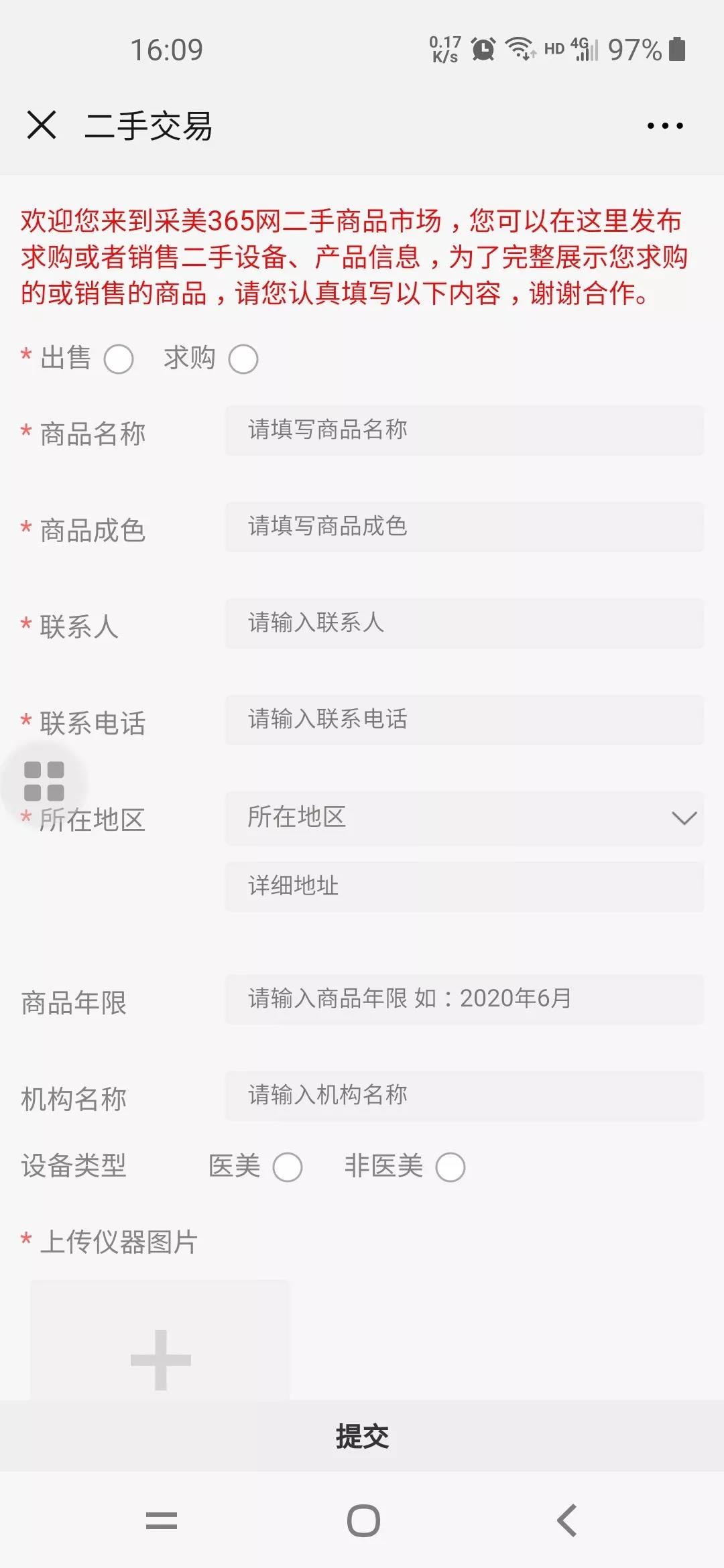 二手版块是采美365网新推出的社区类信息互动交易版块,会员填写简单信息,无需经过复杂的流程即可自主发布二手仪器交易信息,进行转卖或购买。 个人卖家能获得更大程度的曝光量、更高效的流通路径等优势,让闲置的仪器快速奔赴天南海北的新主人手中物尽其用。