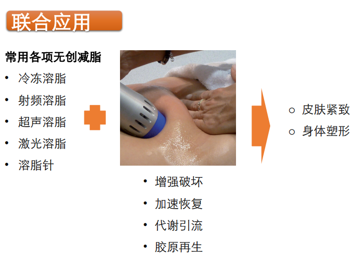 冲击波最早应用于疾病的治疗,比如肾结石和胆结石。后采曼医疗把相同原理技术应用于医美行业,主要用于橘皮、妊娠纹和膨胀纹,达到紧致皮肤和减脂的效果。可单独使用冲击波治疗,联合治疗效果更佳。