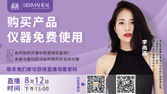 本次采美医美直播由采美与德玛莉联合播出。基于大环境下,皮肤管理中心开展中胚层项目的需求,采美提供一款合法合规适用于皮肤管理中心的无创导入仪器。除仪器之外,采美联合德玛莉给予产品的支持。