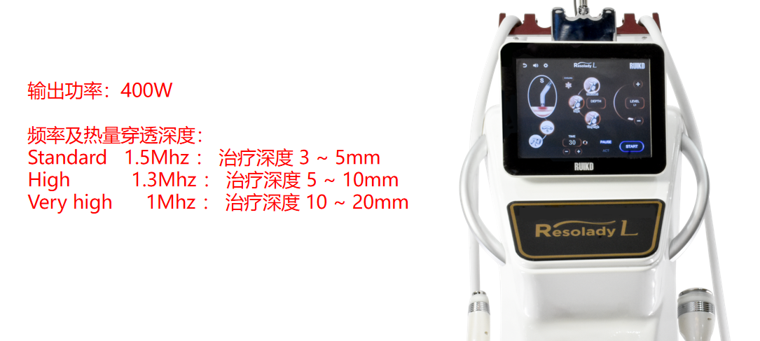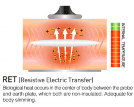 瑞恺迪内脂刀利用RET技术利用10万赫兹以上的高频能量转换成生物热能,通过提高组织温度,从而改善细胞功能,增加血流量,促进淋巴循环等。
