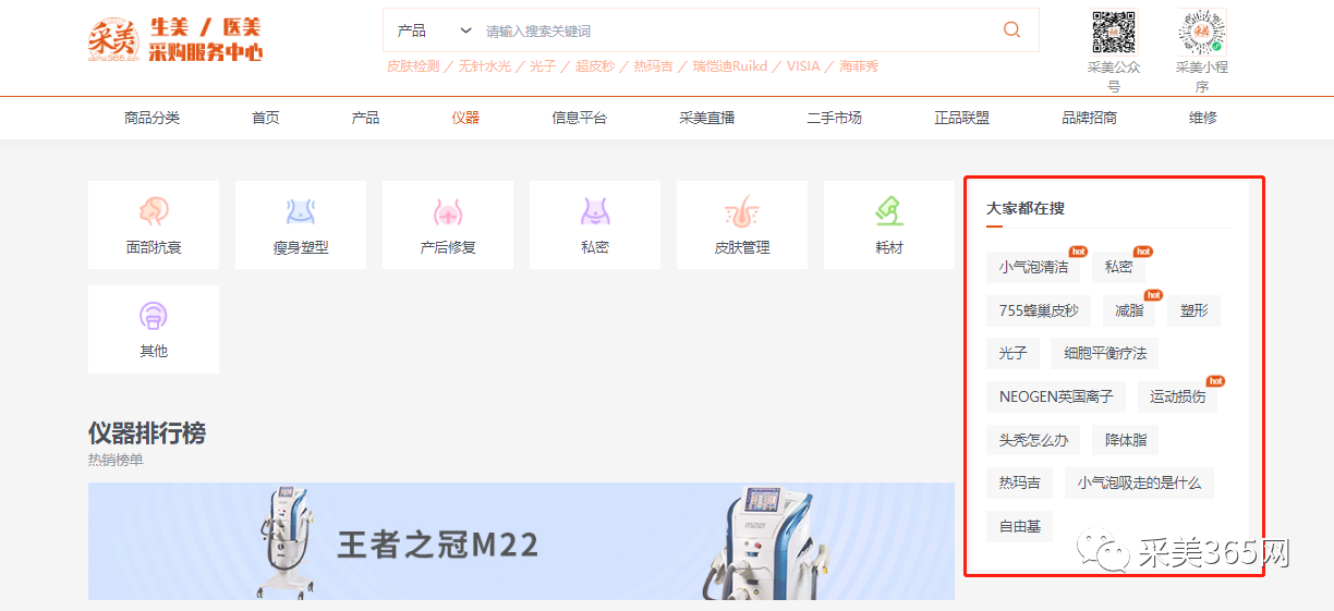 产品重新分类,入口内容和广告位重新调整,将对产品今后的销售转化起到推动作用,本次首页调整让采美更接近大型平台首页设计,也便于市场和推广团队的全年运营。