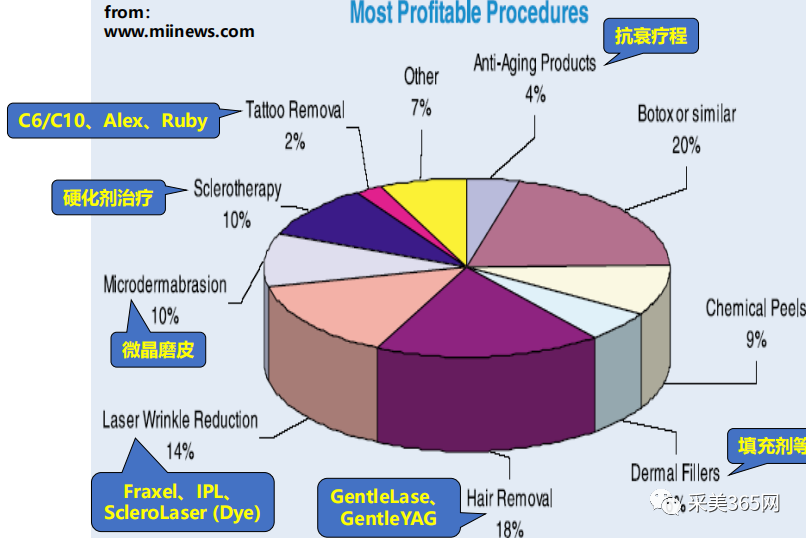 • 超过半数的医美疗程都可以结合使用(如:嫩肤、脱毛、血管 治疗、瘢痕治疗、皮肤注射等)