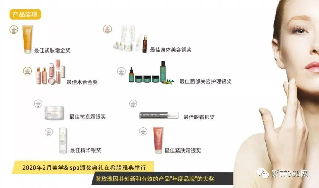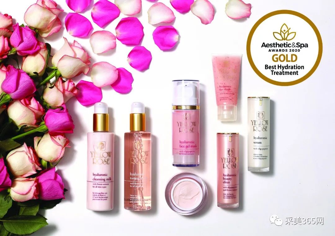 YELLOW ROSE黄玫瑰玻尿酸花瓣系列产品于2020年2月在希腊雅典“美学&SPA”颁奖典礼获得“最佳水合金奖”。