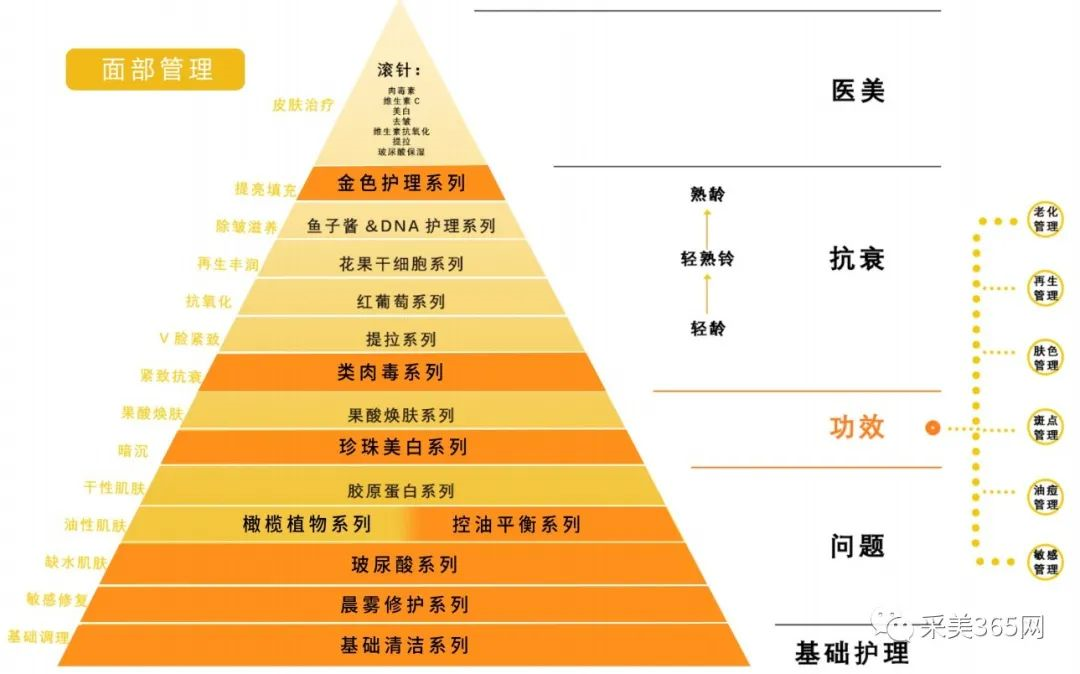 YELLOW ROSE黄玫瑰护肤产品根据皮肤四大领域(皮肤管理+生活美容SPA+医美术后保养+预防美学),分为五大板块,基础护理、问题、功效、抗衰及医美护理。