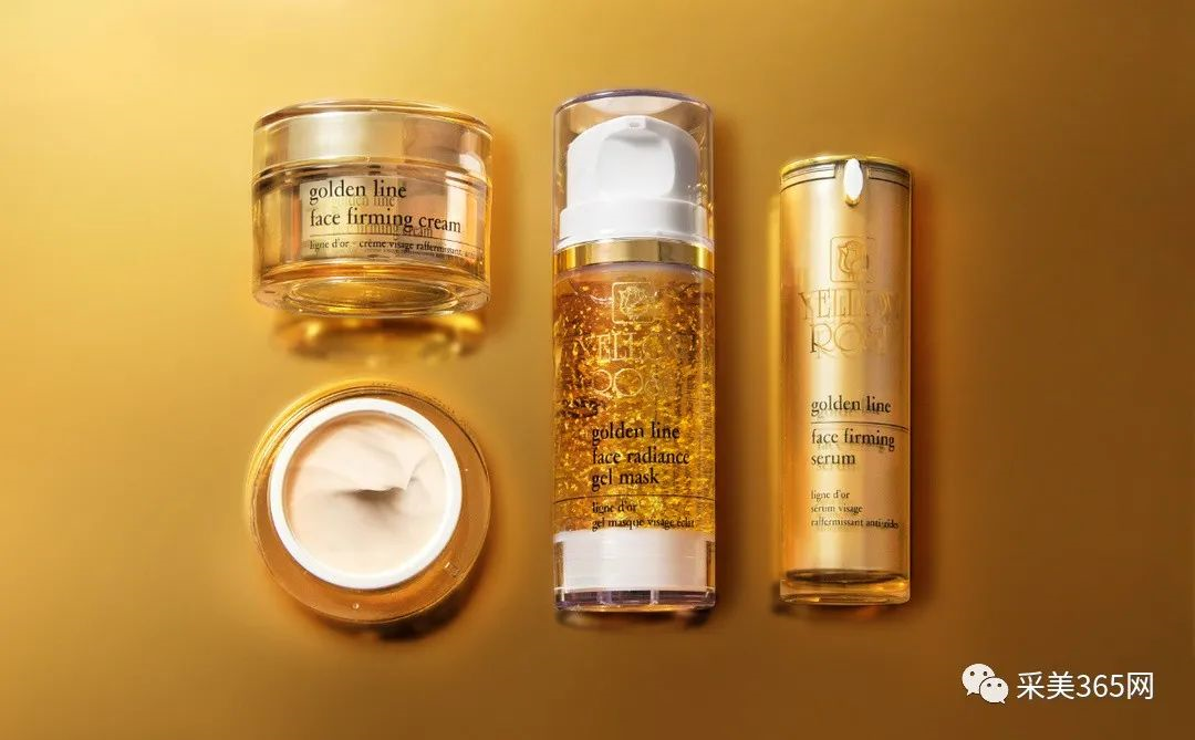 YELLOW ROSE黄玫瑰金色护理系列产品——奢华的抗皱处理,使用24k纯黄金、海洋胶原蛋白、丝蛋白、寡胜肽等多种活性物质,提高皮肤亮度和肌肤紧致度。