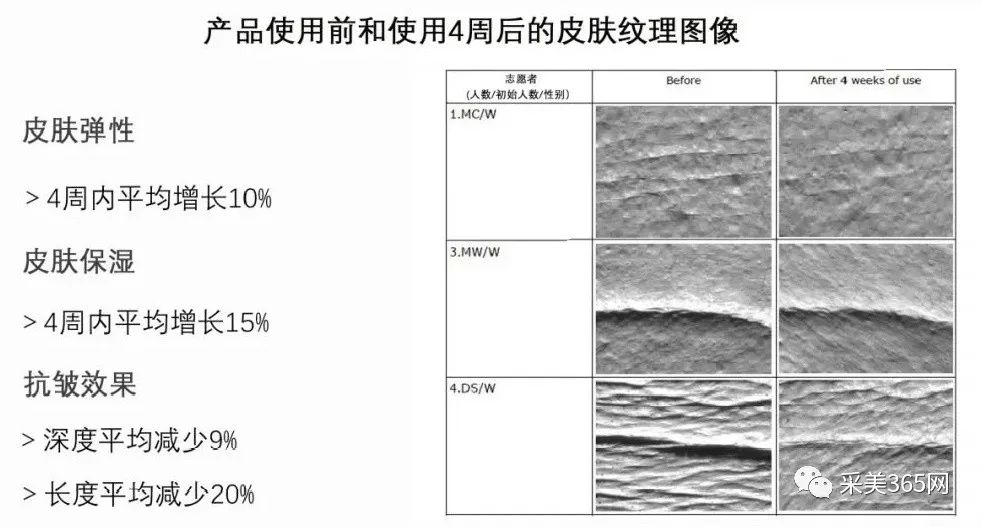 YELLOW ROSE金色护理系列产品在产品使用前后的对比,皮肤弹性、皮肤保湿度、抗皱效果提升,肌肤状态明显改变。
