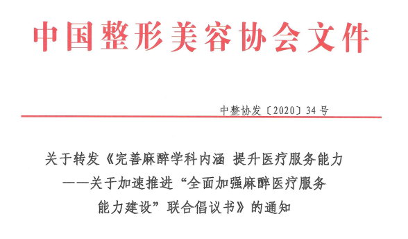 为推进全面加强麻醉医疗服务能力建设,中国整形美容协会发布联合倡议书