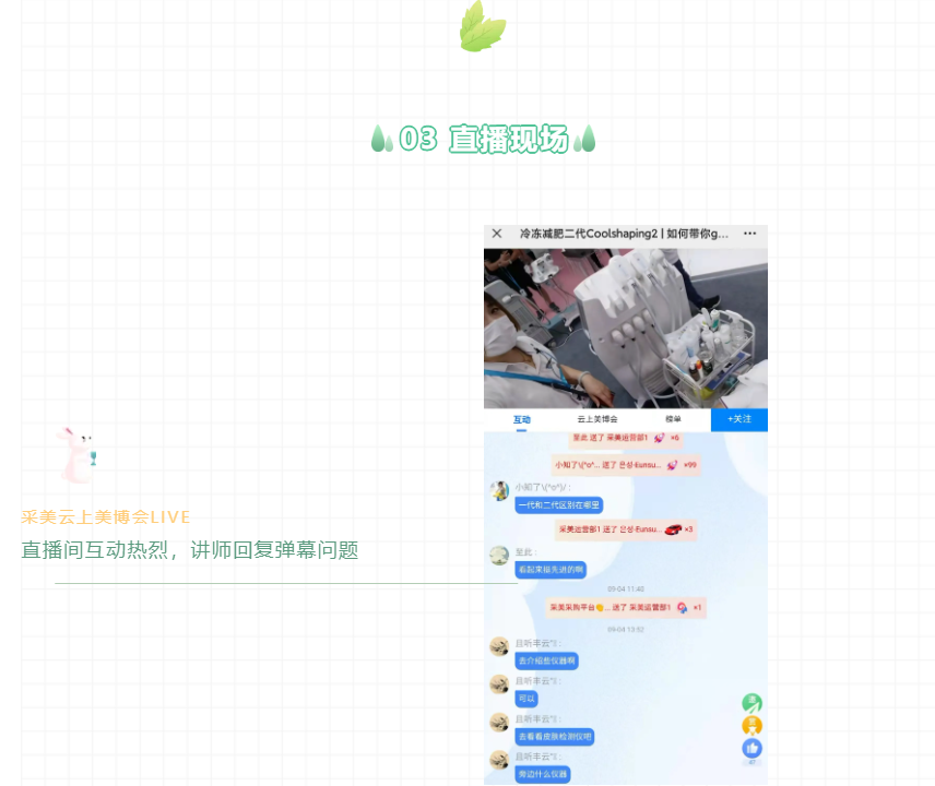 9月4日首场云上美博会LIVE由采美供应商恩盛国际带来,本场出镜的仪器是在采美平台独家售出的冷冻减脂COOLSHAPING 2 冰美人二代。