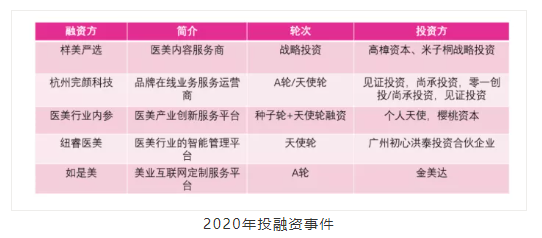 自2015年以来,互联网医美平台快速崛起,2018年开始逐渐降温。2020年经过疫情的洗礼,直播、服务平台冲出重围,受到更多资本的青睐,样美严选、完颜科技等主做MCN业务的企业迎来一波被投小高潮。