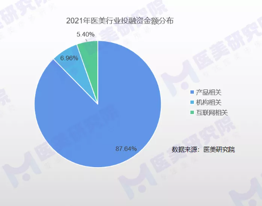 据医美研究院统计,2021年全年,上游产品融资收购事件20起,占全年融资收购事件57%;从金额上看,根据已透露的融资金额估算,上游产品融资收购金额约占全年的87.64%,可以看到资本市场对医美行业的热度主要集中在上游产品。