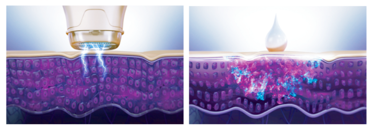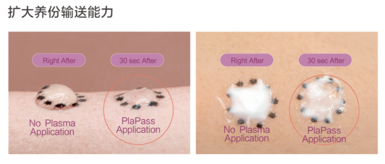 透过等离子能量的传送,以短暂性破坏「细胞黏附份子」,将养分迅速渗入皮肤深层。