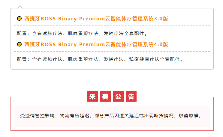 活动期间,采美会员在采美商城购买西班牙ROSS Binary Premium云智能体疗管理系统3.0版/4.0版,可获得以下两种活动方案支持: