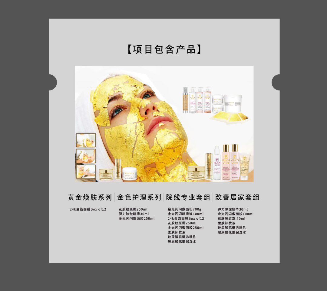 奢华的抗皱处理,使用胶原蛋白抗衰填充物和24K纯金,提高亮度和紧致度。