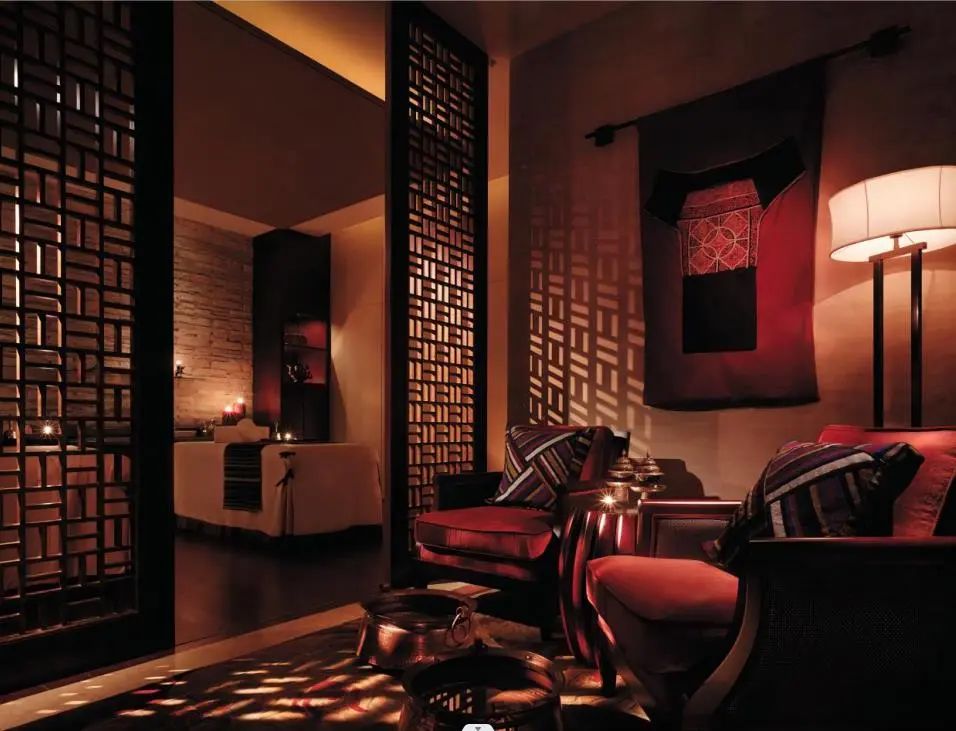 幽幽的灯光加之暖和的色调营造出神秘的气场;结合了中国和西藏的建筑特色的室内设计;上等檀香和精油散发出迷人香气......