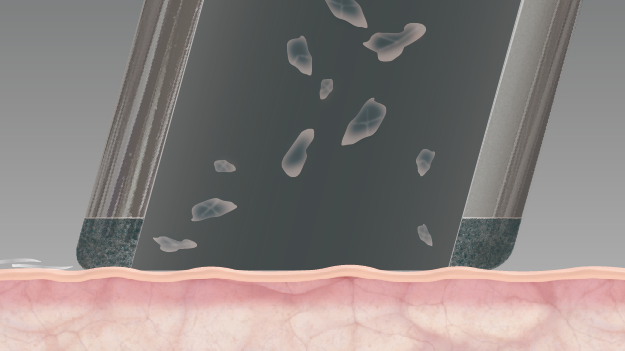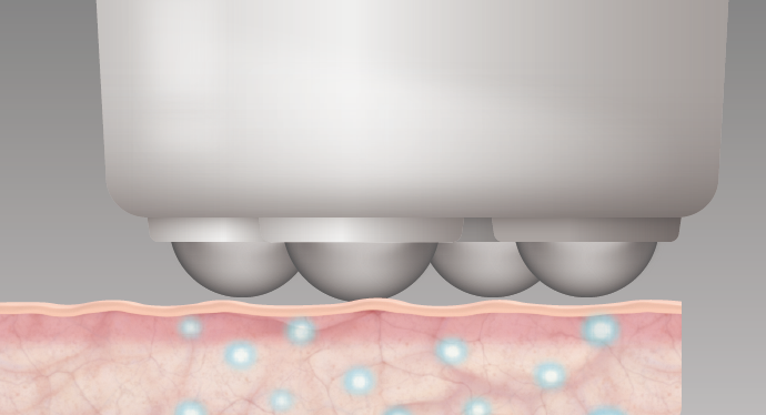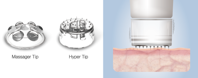 微震动技术通过强力微震动,增加皮肤毛细血管的血流,通过增加的血流加快新陈代谢去除皮肤污垢,提供营养成分,使皮肤恢复健康状态,Hypertip的微小突起与震动按摩相结合,促进营养成分的渗透,诱导代谢物排出,使肌肤明亮健康。