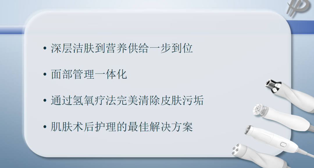 HydraBeauty2的专用溶液,通过螺旋型形状扩散到皮肤上与皮肤接触,有效清洁皮肤污垢、皮脂、角质黑头、白头等,同时增加了新的身体清洁头可对多个部位进行操作护理。