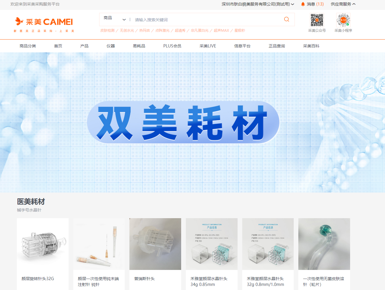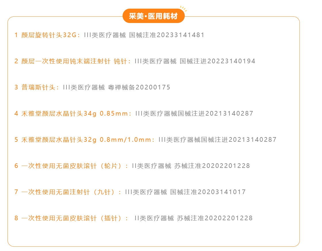 想了解更多生美/医美耗材,您可从PC端进入采美商城首页-点击双美耗材-进入双美耗材专区(或进入采美采购商城小程序首页-点击双美耗材-进入双美耗材专区-点击更多-查看全部商品)-选购您想要的商品!
