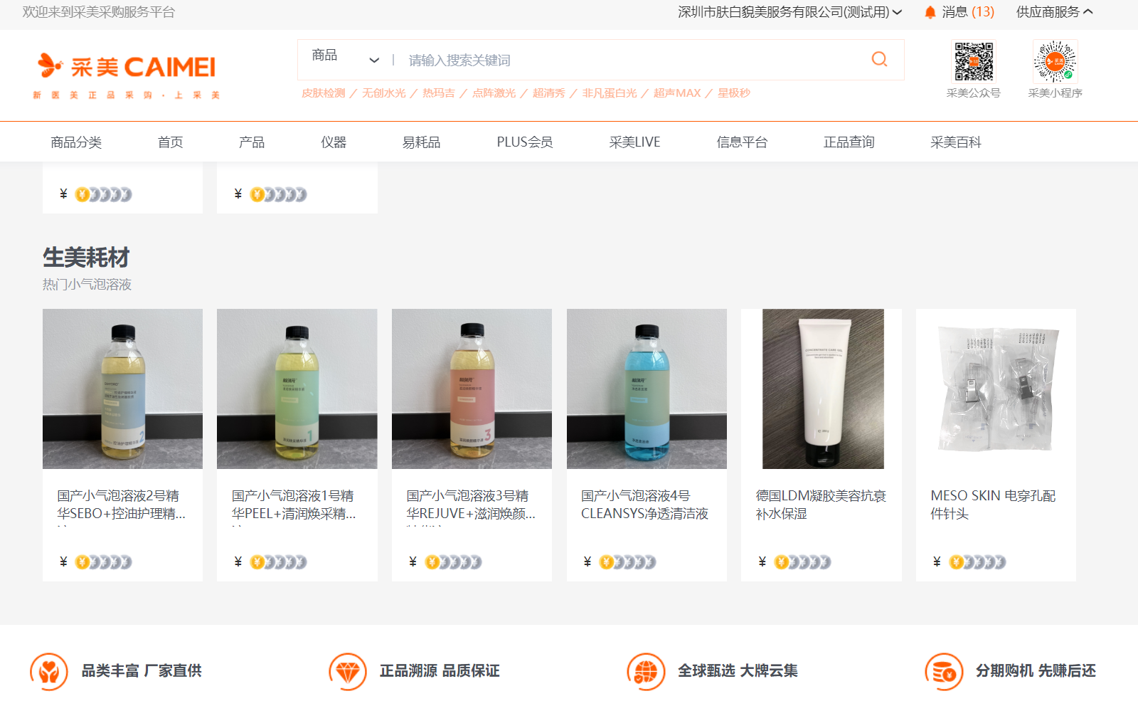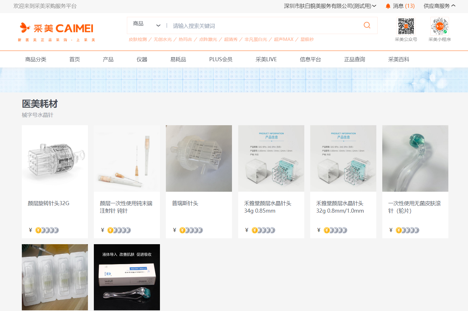 客户进入采美商城【双美耗材专区】即可看到采美商城全部生美/医美耗材,这里有不同品牌、不同规格的商品供您选择!