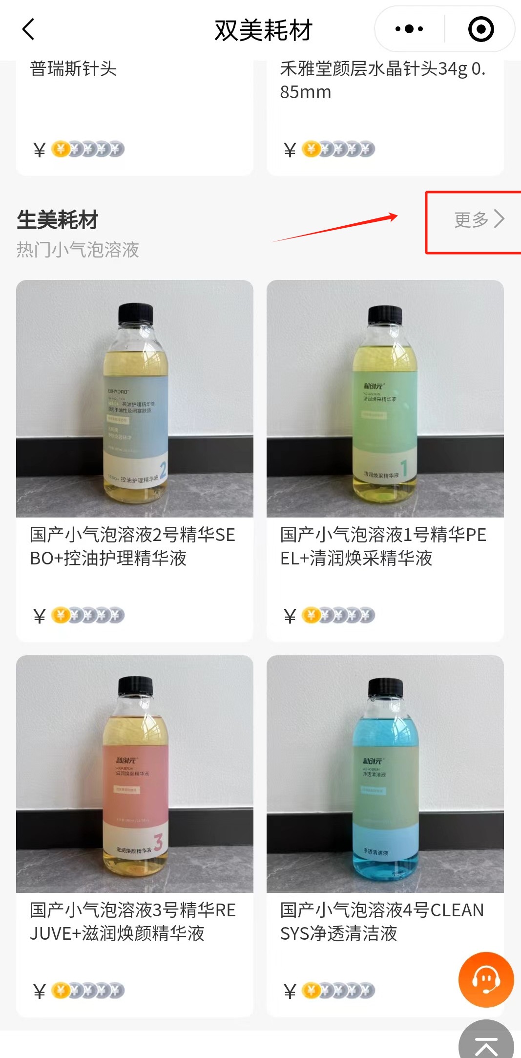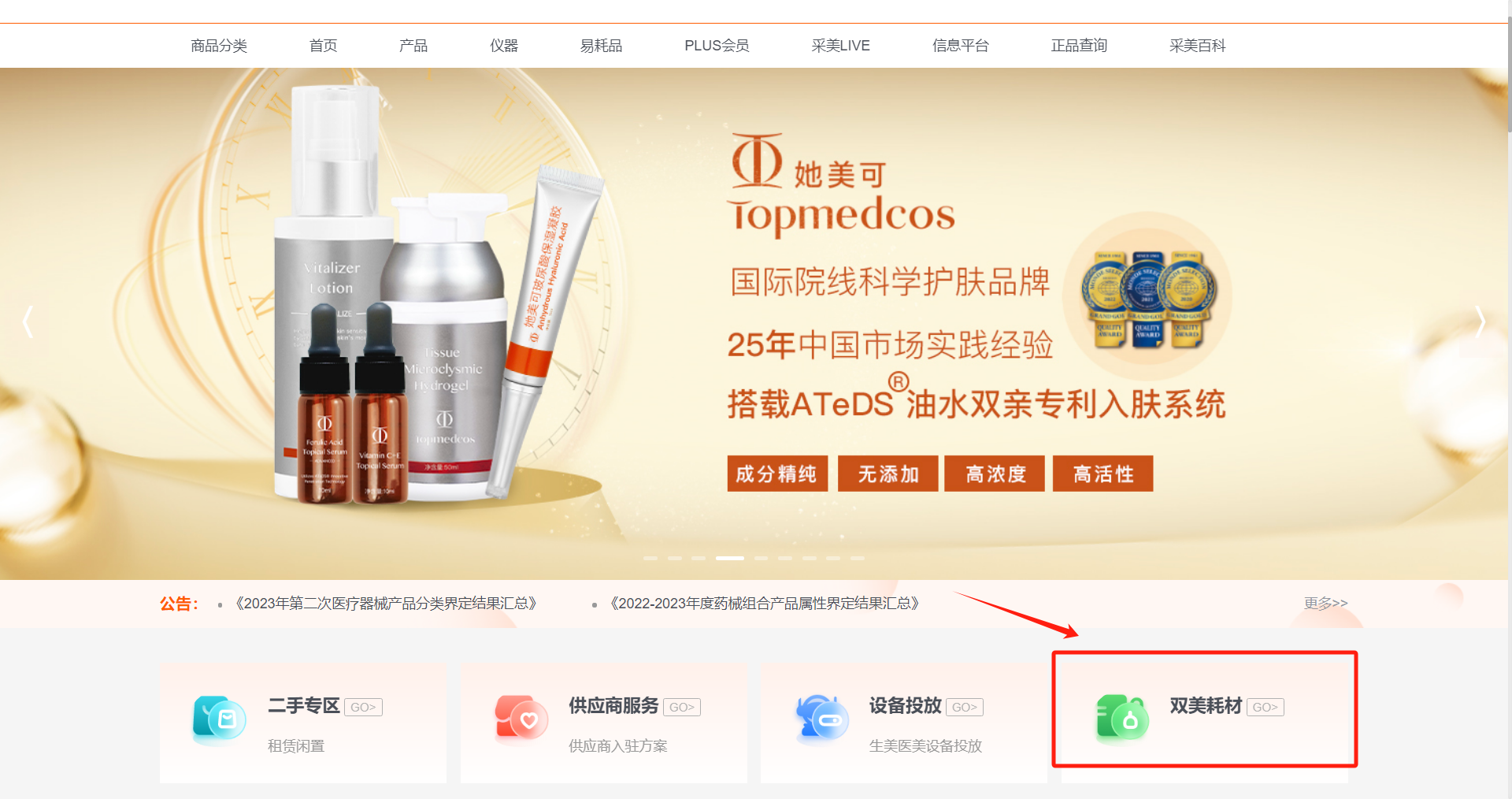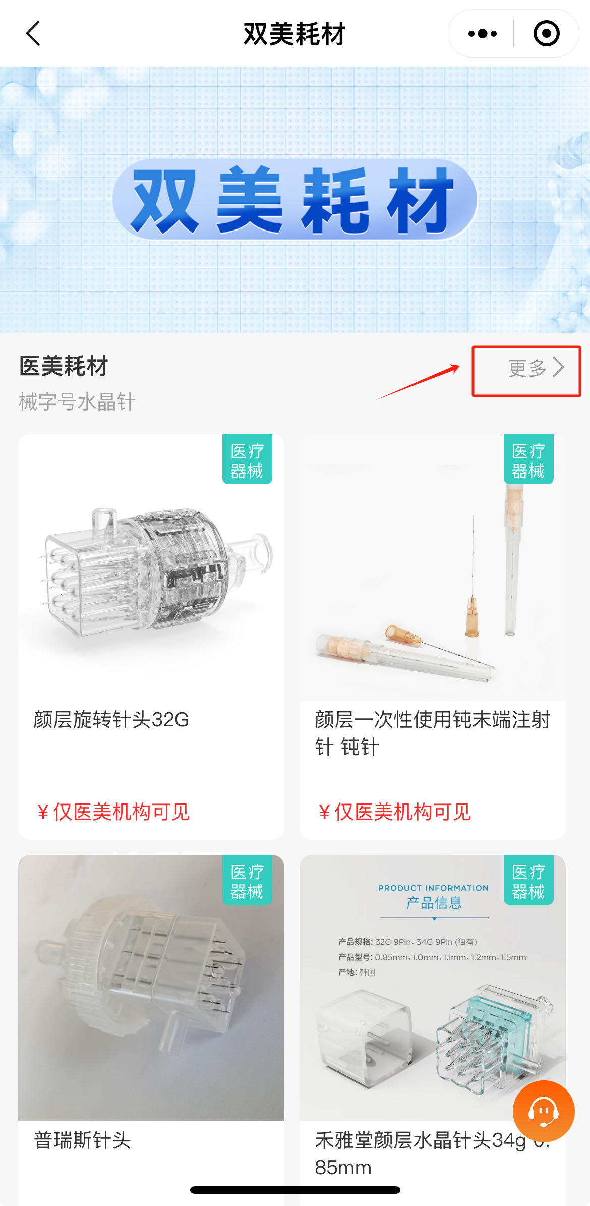 02进入双美耗材专区-分别点击医美/生美耗材-更多