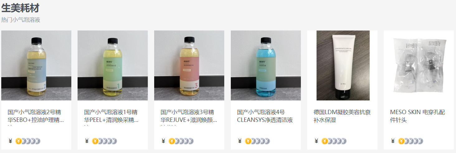 👆部分生美耗材展示