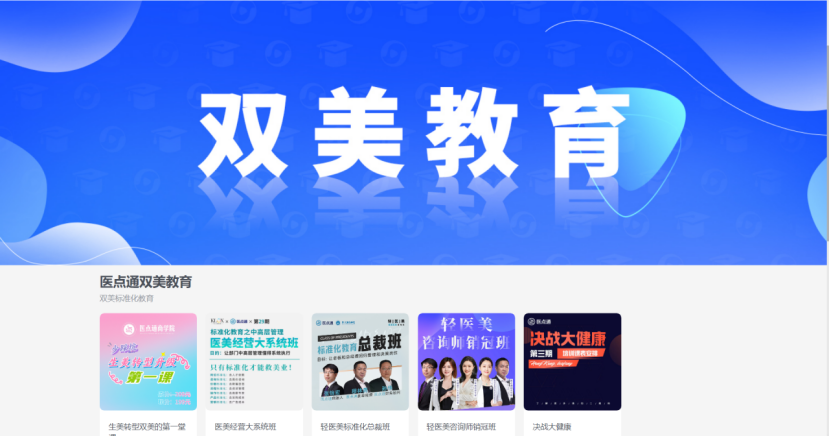 目前,医点通最新开展精品课程有:医美经营实战方案班、轻医美总裁班、轻医美咨询师销冠班、生美转型双美的第一堂课、决战大健康等课程上线采美,供更多美业用户了解、订阅、购买。如有需要,可上采美医点通指定店铺查看详情。