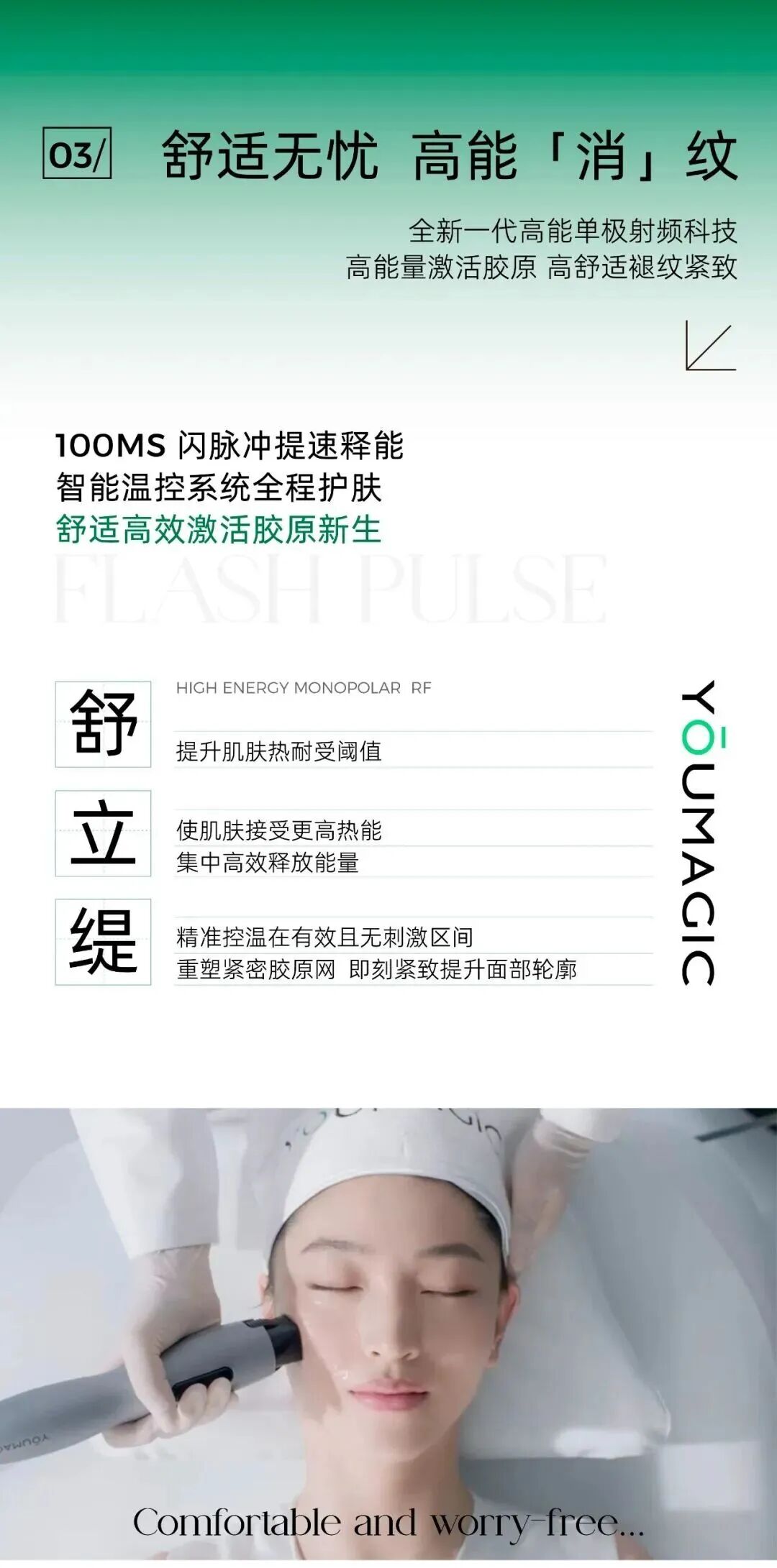 更适合东方肌肤的YOUMAGIC舒立缇不仅提供了一种治疗方式,更带来了全新的高能生活理念,重新定义精准能量新模式。