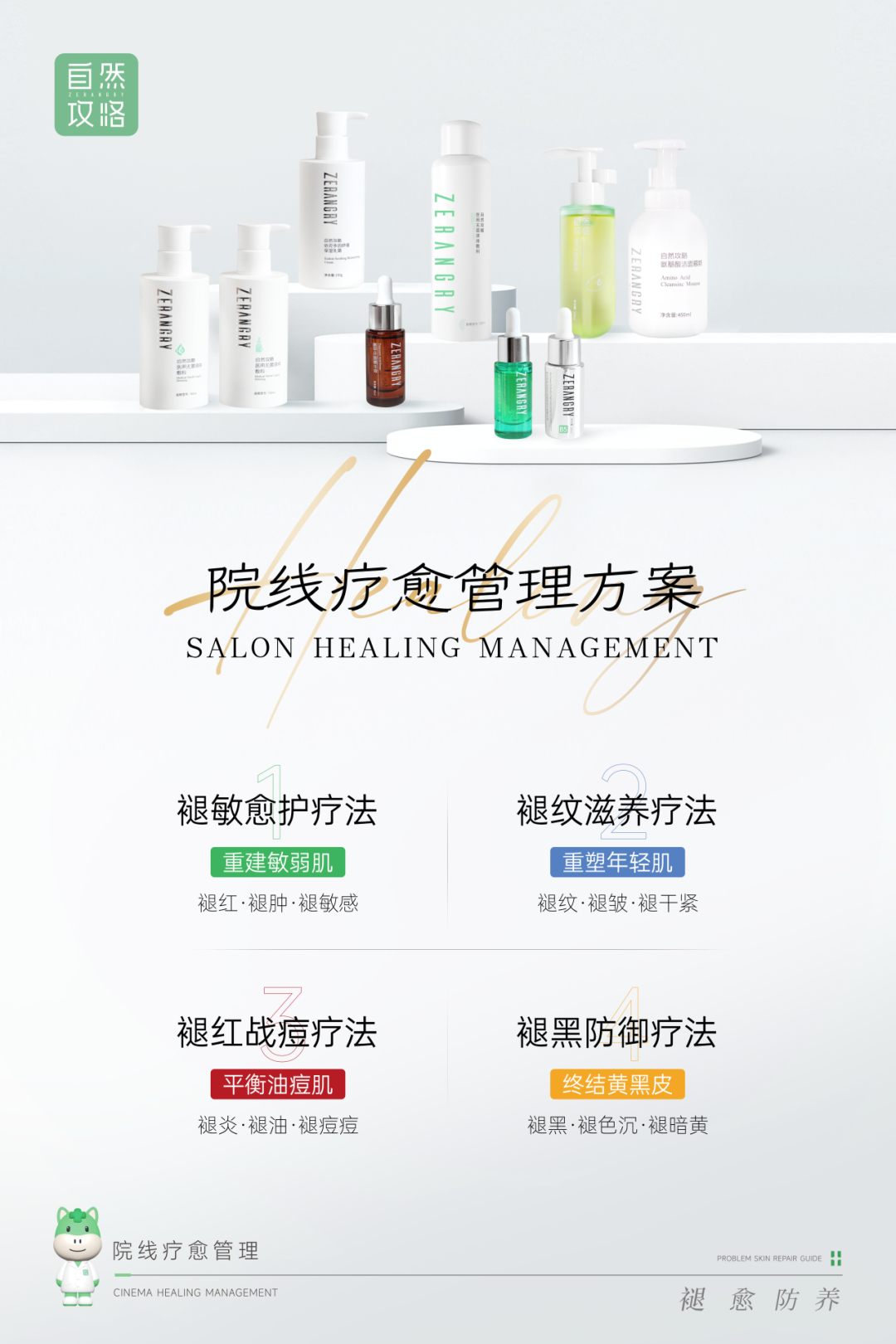 三大核心系列:院线疗愈系列(无创导入,舒缓敏感)、中胚治疗系列(有创赋能,精准护理)、术后修复系列(全层养护,长效维稳),自然攻略重新定义高效护肤,为术后肌肤提供科学、精准的修复方案。开启“攻略护肤时代”。