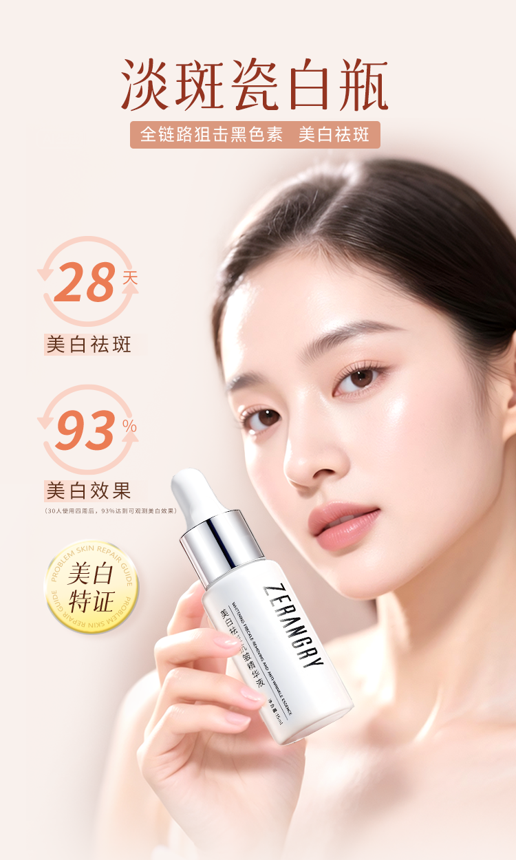 亮颜防御系列产品:自然攻略淡斑瓷白瓶上新!持证上岗(美白特证:国妆特字20255239),28天美白祛斑(30人4周后,93%达到可观测的美白祛斑效果)黄金五重亮白引擎,复配修护堡垒,实现全链路狙击黑色素,温和美白祛斑。
