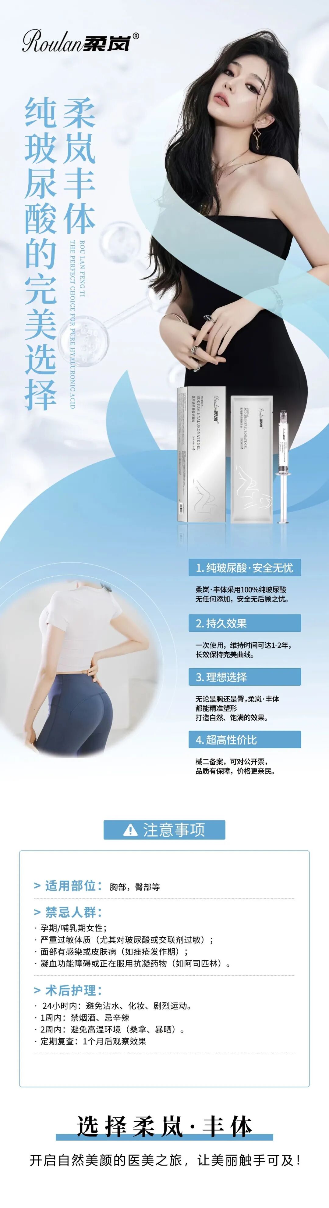 柔岚丰体是一款专注于身体塑形的20毫升超大容量玻尿酸产品,其核心特点在于运用了单项交联技术,旨在为求美者提供一种安全可逆且效果显著的医美选择。