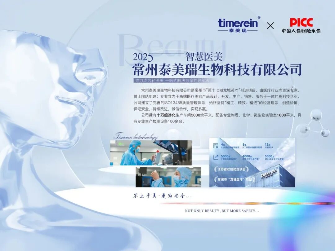 常州泰美瑞生物科技有限公司位于常州市国家级医疗器械孵化园,是常州市重点引进的“龙城英才”项目,江苏省双创优选项目。公司主要布局于快速发展的轻医美赛道耗材、功能性再生材料及光电设备类产品的研发、生产、销售于一体的高新技术公司。