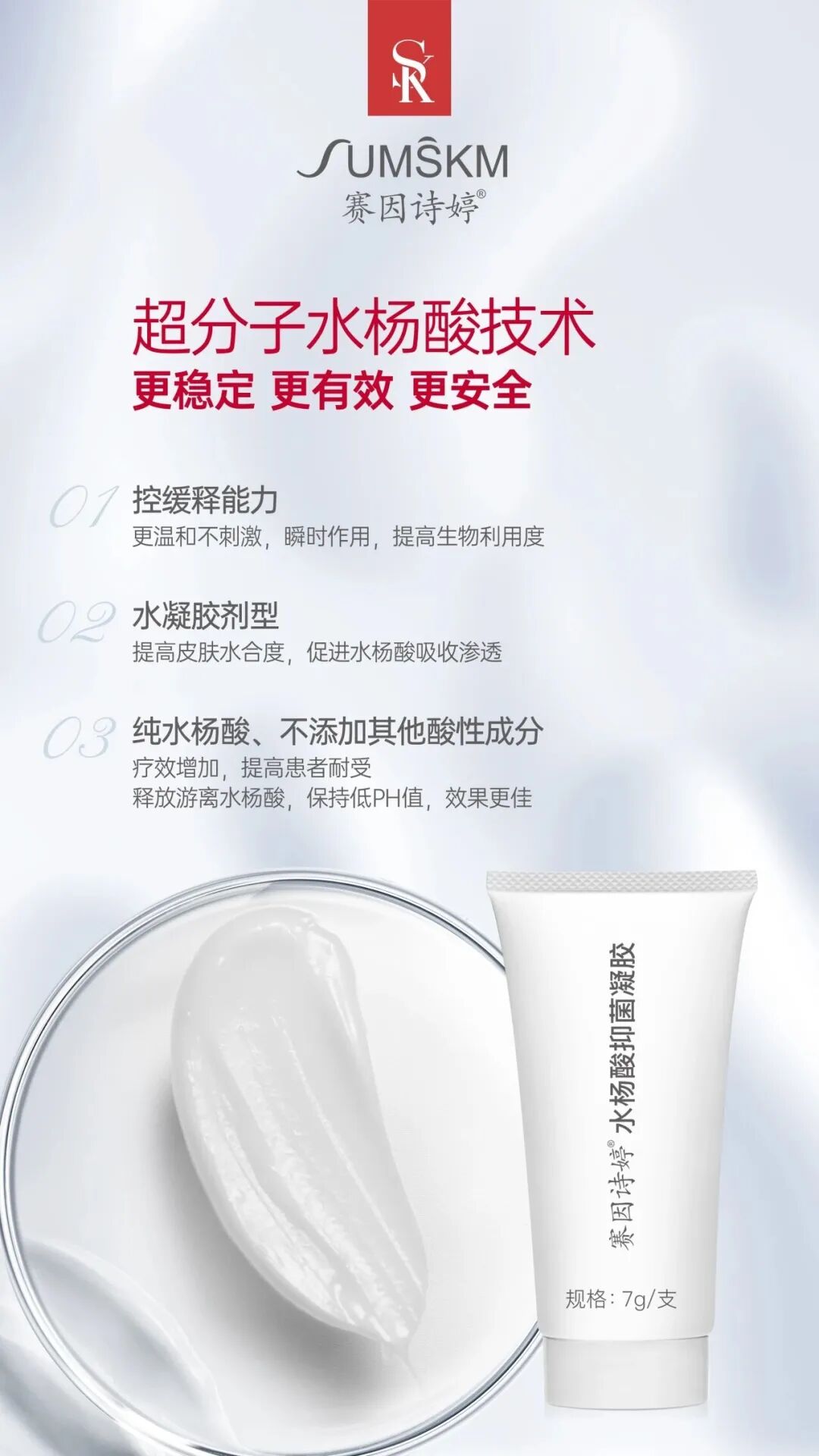 赛因诗婷历时5载利用超分子水杨酸技术,精心研制出30%超分子水杨酸,以溶解性和稳定性著称,持续实现缓释效果,减少皮肤刺激。超分子水杨酸的主要功效包括抗炎祛痘、美白提亮、控油缩毛孔以及促进角质层更新。