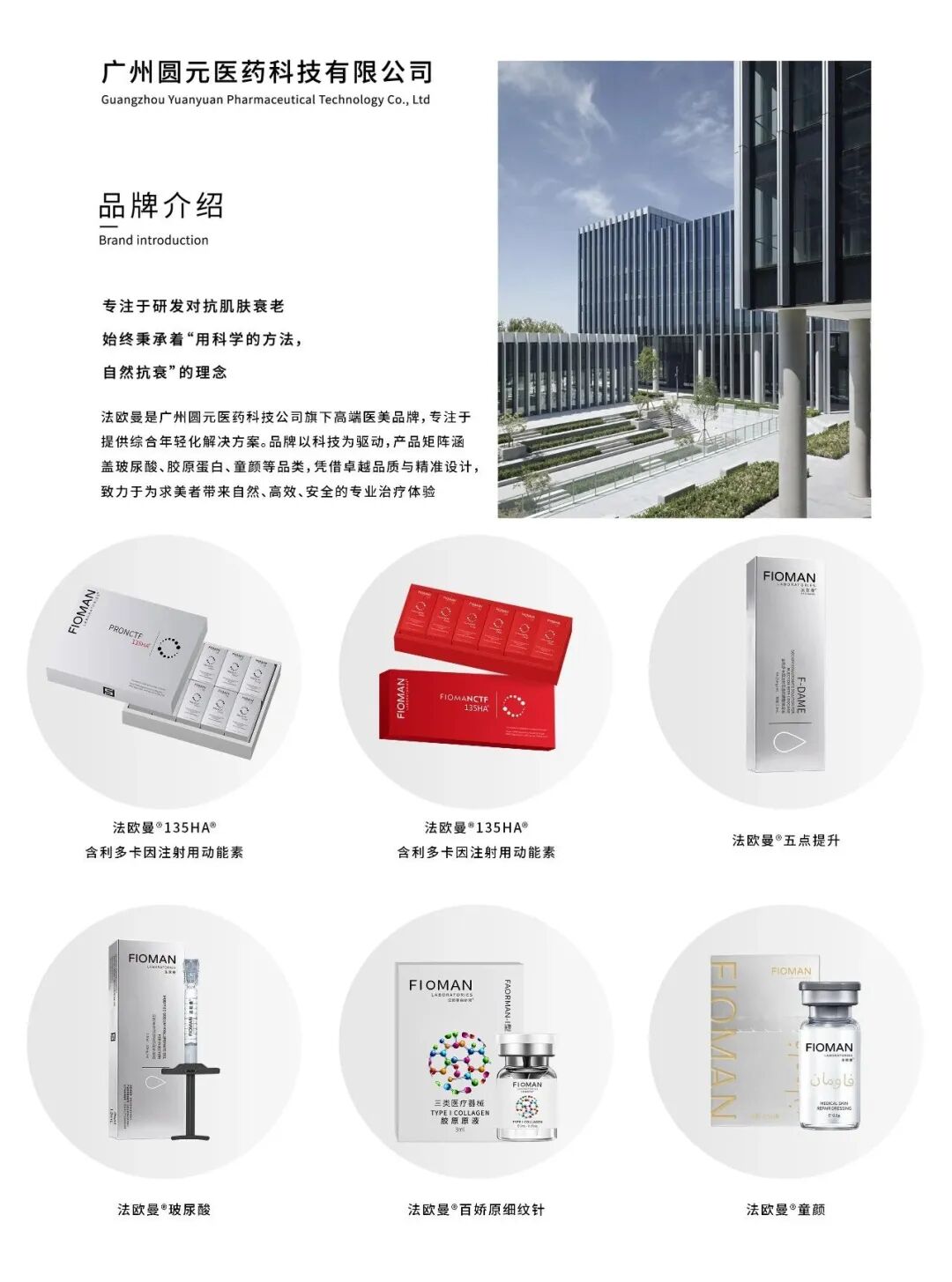 广州圆元医药科技有限公司是一家集研发、生产于一体的创新型医美生物企业。旗下有法欧曼、娇稀原两大品牌,核心产品包括玻尿酸、胶原蛋白系列等,致力于以尖端科技为消费者提供安全、高效的专业级肌肤焕活解决方案。