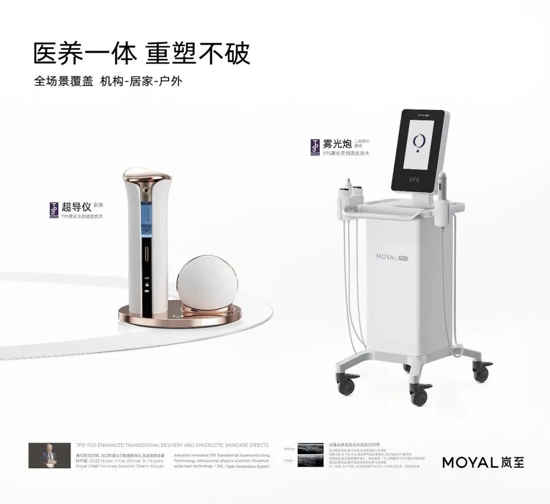 SMOORE集团深耕雾化科技19年,研发投入超66亿,覆盖雾化健康、雾化快消品、雾化医疗、雾化美容四大领域。旗下专业美学品牌MOYAL岚至依托TPS雾化无创透皮技术,秉持“医养一体”产品理念,推出院线产品——雾光炮及家用产品——岚至超导仪,提供“机构-居家-户外”的全场景产品解决方案。
