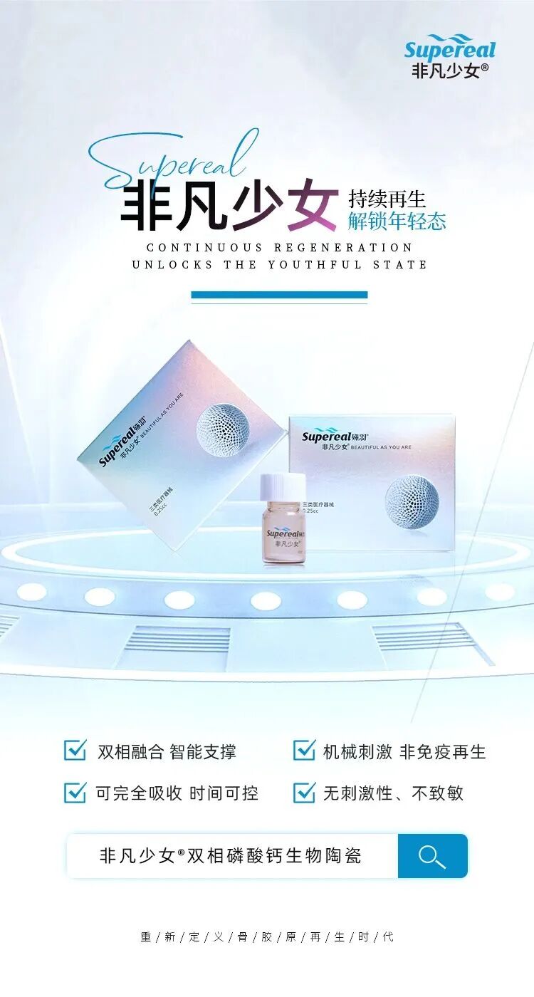 非凡少女双相磷酸钙生物陶瓷产自世界500强大江生医旗下和康生技。是一款创新型再生材料,由60%羟基磷灰石微球(CaHA)与40%β-磷酸三钙微球(β-TCP)复合组成。该材料依托双相磷酸钙的协同机制,具备多孔结构和生物活性,可持久塑形,促进血液循环与细胞活性,激活胶原蛋白再生,支持组织自然修复。采用专利合成工艺,产品安全不致敏,并能被人体完全吸收降解,具有良好的生物相容性与再生效能。