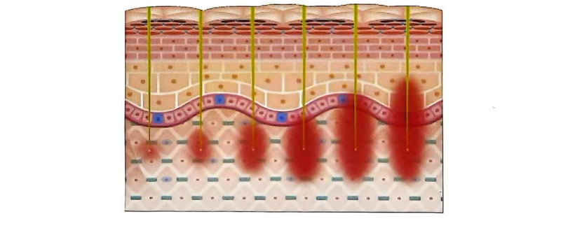 非绝缘型微针的整个针体均可释放射频能量,其作用范围可全面覆盖皮肤的表皮与真皮两层。这一特性使其能够同步改善多种浅层与深层肌肤问题,尤其适用于毛孔缩小、肤色提亮,并有效淡化痤疮疤痕与妊娠纹。
