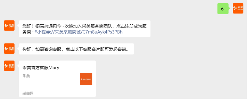 关注采美网公众号,后台回复“6”,点击小程序链接或点击名片咨询采美官方客服,