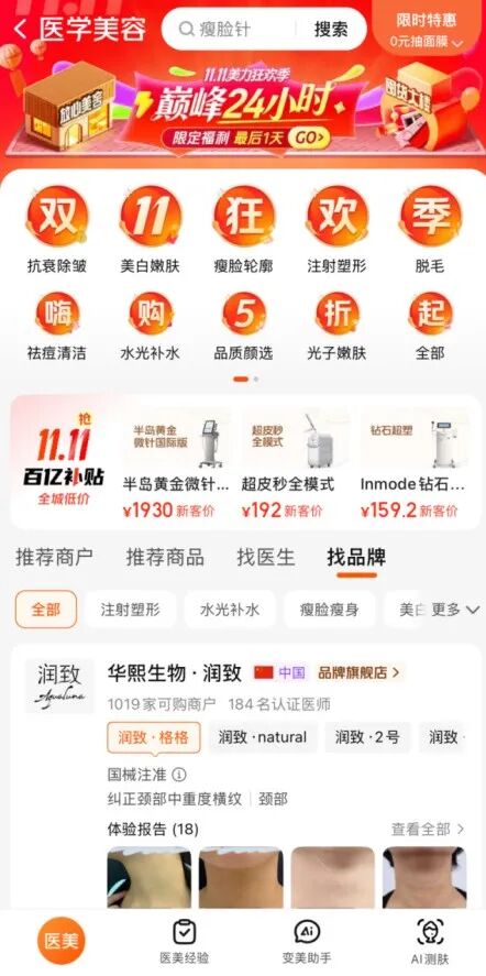 美团作为华熙生物国标水光产品的首发平台,利用“找品牌”等功能,直接将合规品牌推荐给用户,实现了“良币驱逐劣币”的市场示范效应。