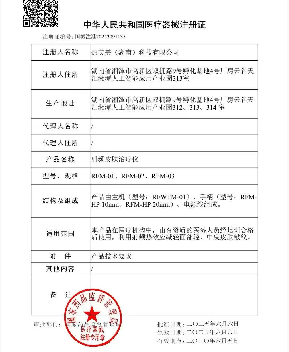 今年,热芙美pro(升级版)已获得了三类医疗器械认证,这又是一次全新的技术升级。一路走来,诚然不易。但正是这份对初心的坚守、对技术的死磕、对体验的执着,定义了热芙美的匠心精神——它不在于喧嚣的口号,而在于一次又一次的对产品的打磨,在于对每一个技术细节的反复推敲,更在于那十万次治疗中,为求美者带来的优质体验。
