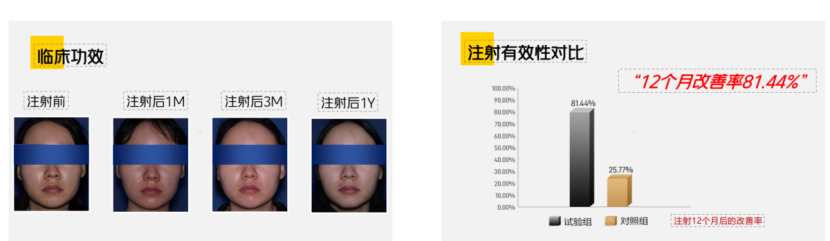 从官方相关数据显示,注射小颜泵12个月后呈现的效果改善率高达81.44%,面部纹路明显变轻。有效改善皱纹情况。