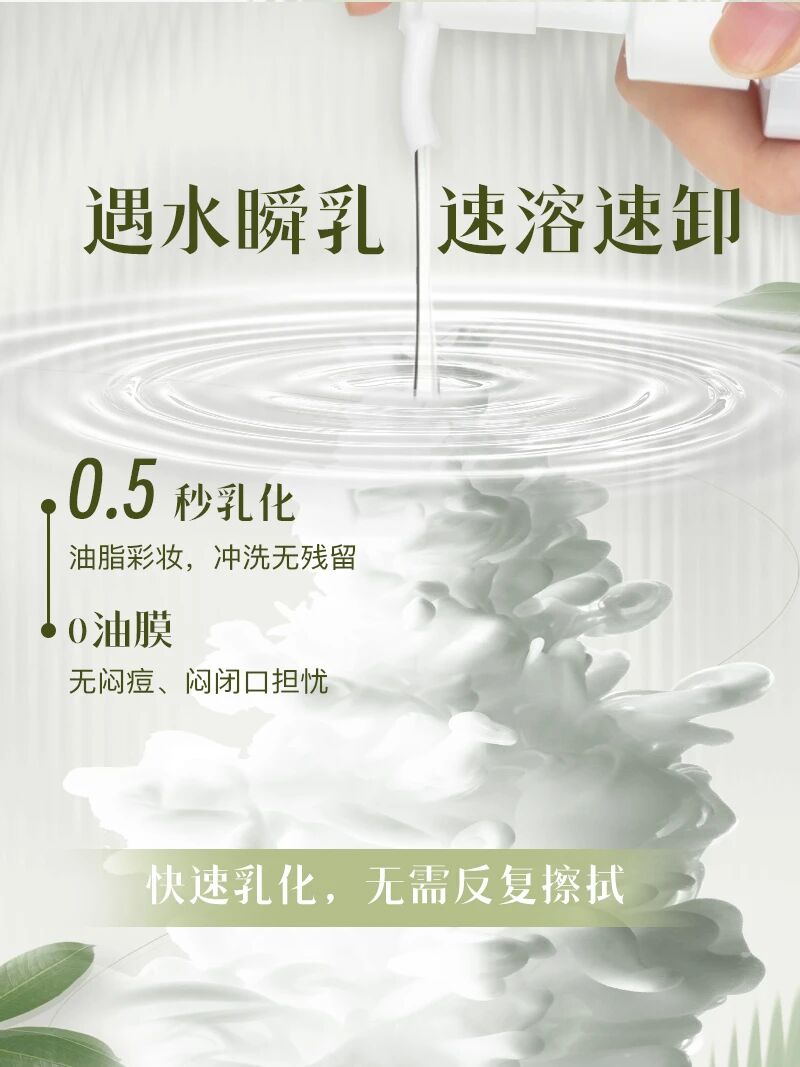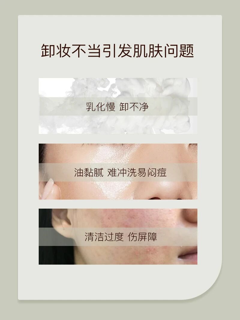 在成分配方上,我们严选天然油橄榄果油等成分,摒弃有害刺激添加,既能快速溶解彩妆,实现温和无残留;又能在卸妆过程中滋养肌肤,洗完水润不紧绷,真正做到 “清洁无损伤,卸妆即养肤”。